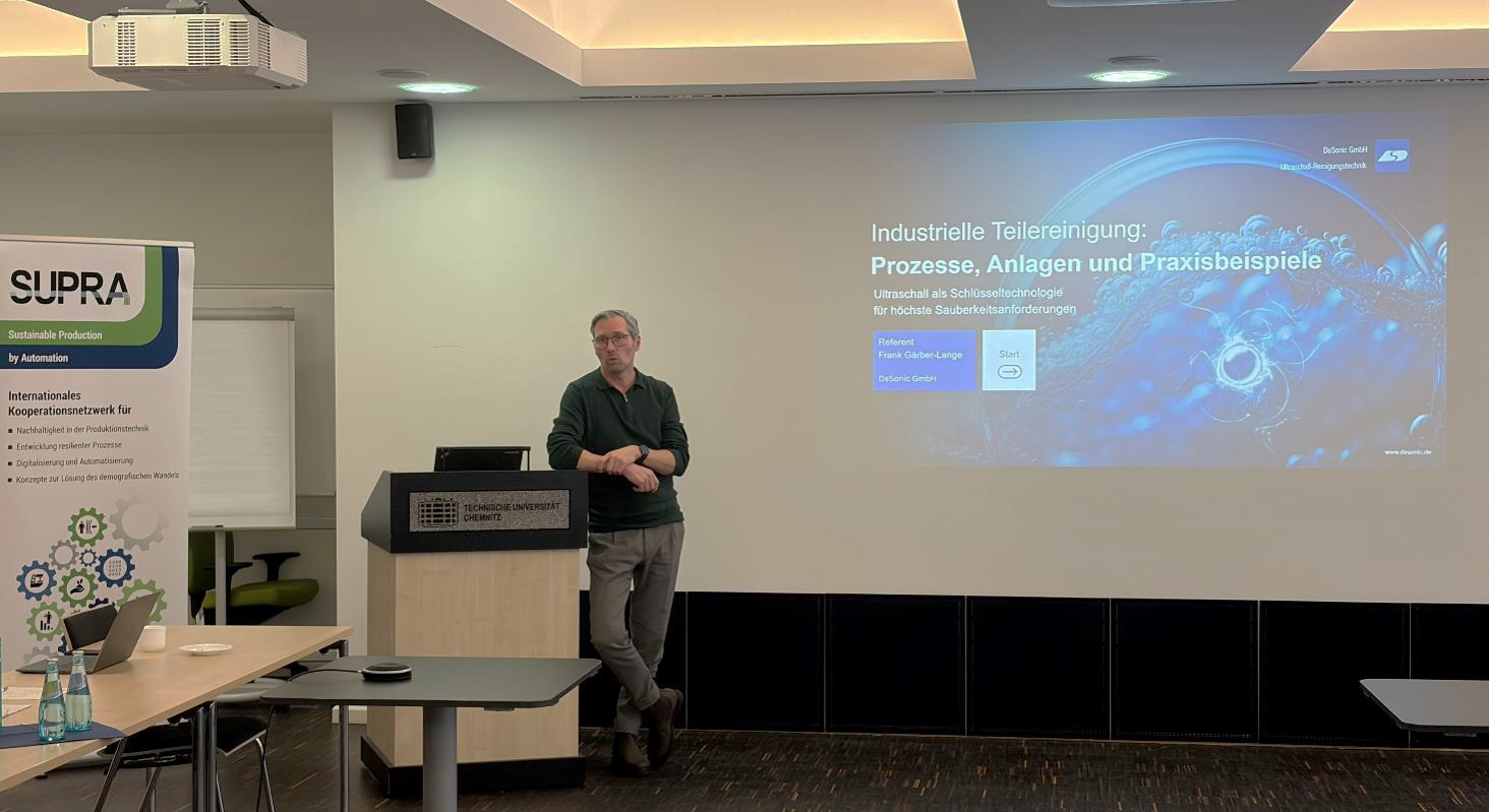 Frank Gärber-Lange (DeSonic) zum Thema „Industrielle Teilereinigung: Verfahren, Anlagen und Praxisbeispiele“ Foto: Matthias Rehm